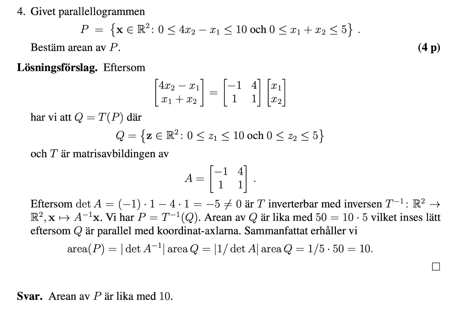 D4NIEL skrev:Luffy skrev:Och koordinatbytet, har de gjort det med anledningen att beräkna area av rektangel istället för parallellogram?