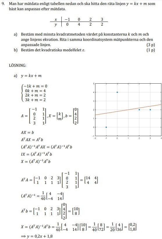 Linjär Algebra kvadratisk medelfel (KTH Uppgift)