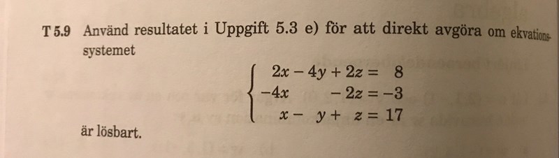 Linjär algebra, Lösbart system? (J. Månsson 5.9)