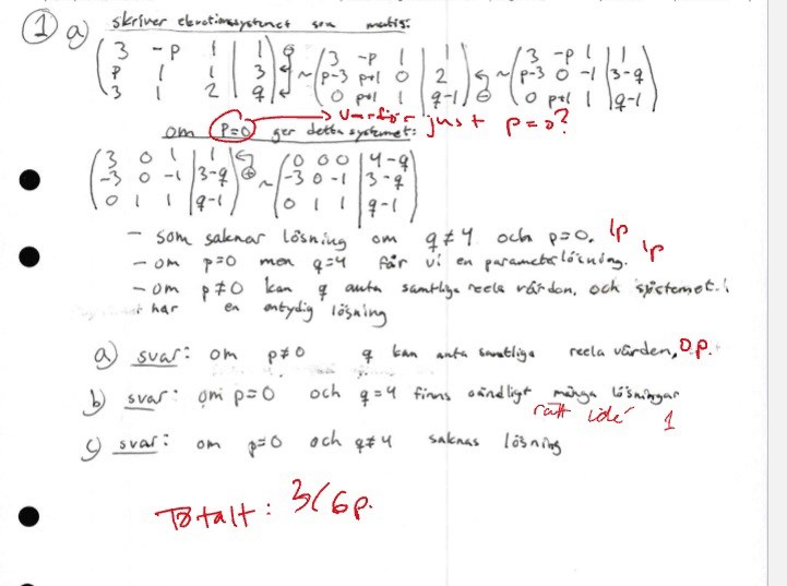 fick just tillbaka tentamen i kursen algebra och geometri. Förstår dock inte hur denna uppgift ska lösas korrekt, och facit är inte uppladdat. Hur ska man generellt lösa en sådan här uppgift?