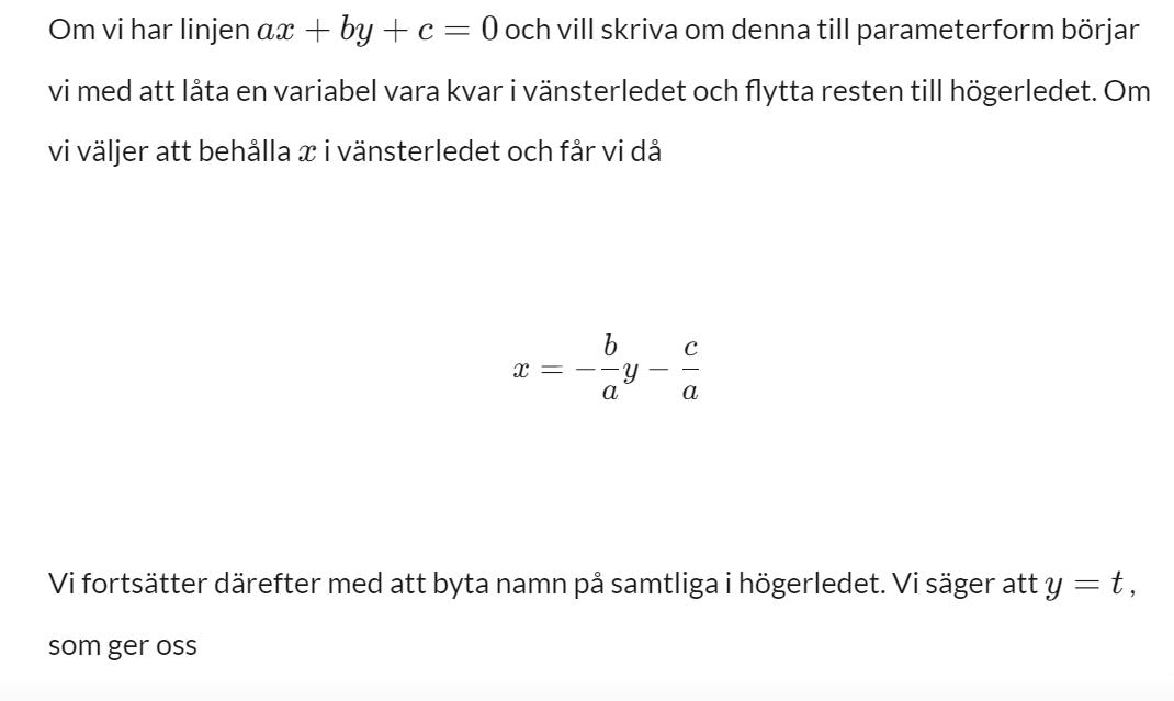 På https://ludu.co/course/linjar-algebra/parameterform/ står det följande: