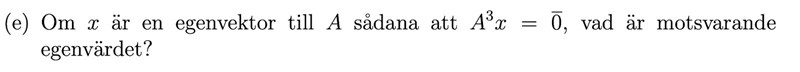 Jag har lite problem med denna fråga. Kan det vara så enkelt att egenvärdet också blir upphöjt till 3? Isf, varför? Eller hur ska man tänka?