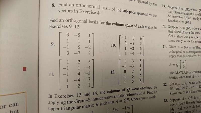 Har de beskrivit Grahm-Schmit? Isf ska du använda den på kolumnerna för att få fram en ortogonal bas till rummet.