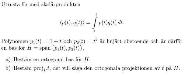 Jag har uppgiften nedan. Enligt Gram-schmidt metoden ska jag beräkna: