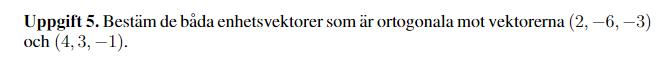 Jag har försökt lösa uppgiften genom att sätta en vektor (x,y,z) multiplicerat med båda vektorerna var för sig ska vara lika med 0.