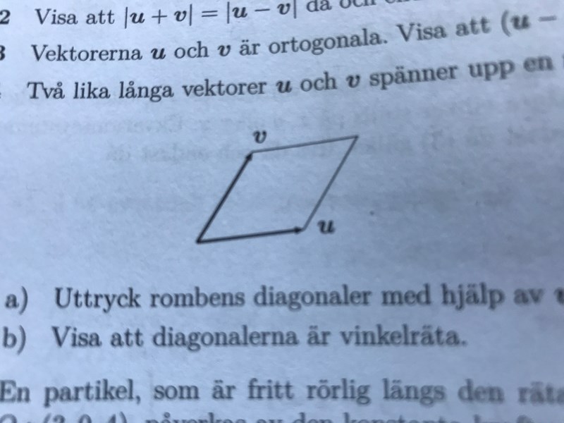(u+v) repsktive (u-v) men jag vet inte hur man viser att de är ortogonala/vinkelräta.