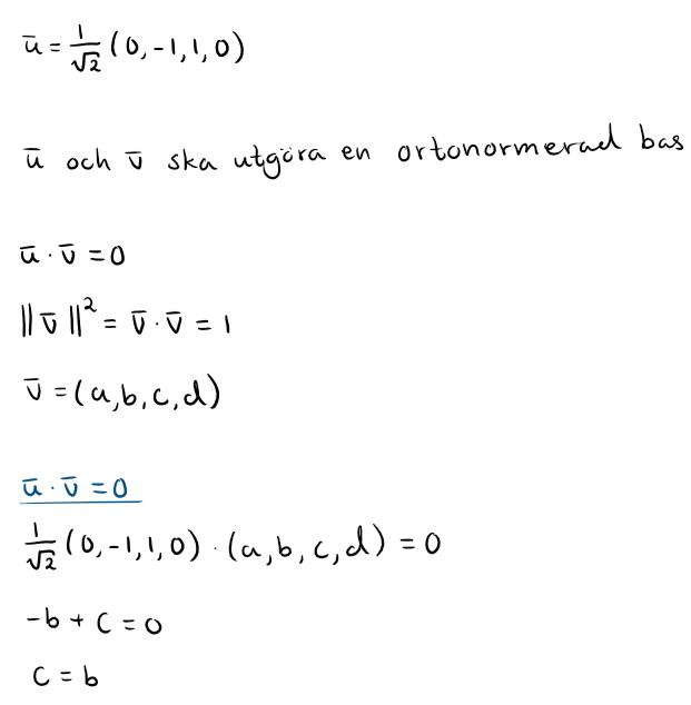 u och v ska utgöra en ortonormerad bas