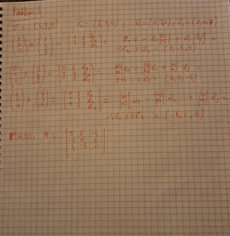 PATENTERAMERA skrev:1. Kryssprodukten med given vektor u. En linjär avbildning. Du har tittat på denna tidigare i annat problem.