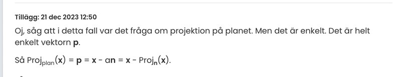 PATENTERAMERA skrev:Det första är projektionen på planet. Det är en vektor som ligger i planet.