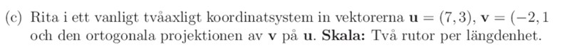 Är med på hur vi räknat ut projektionen nedan, och även varför u får den längd och riktning som syns i bilden. Är dock inte med på hur v och projektionen av v på u blir som de blir i bilden?