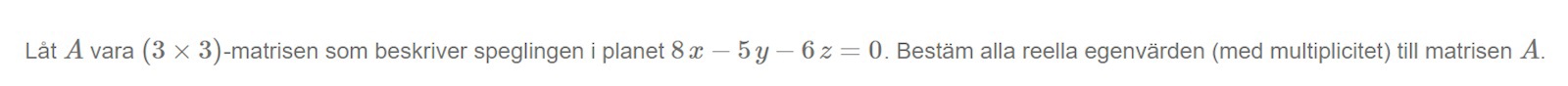 Jag har lite problem att komma vidare med uppgiften, är spegling av planet samma sak som att ta fram avbildningsmatris?