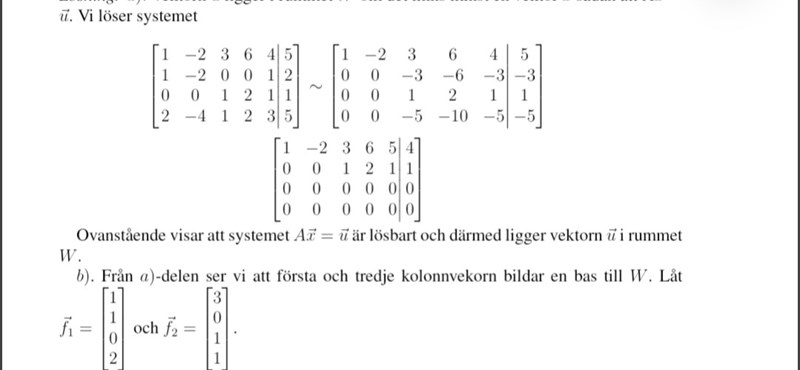 Jag förstår ej riktigt hur tredje kolonvektorn bildar bas till W. Den är ej på reducerad trappstegform eftersom det är ej 0 ovanför den ettan?