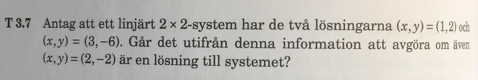 Men var nyfiken i fall jag tänkte rätt med ekvationssystemet. Försökt läsa i kursboken men inte hittat något för vilket gör mig misstänksam (även om jag egentligen inte hittat något mot).
