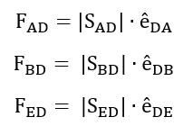 Ställer sedan upp spännkrafterna, att spännkraften är ett resultat av enhetsvektorn och storleken av kraften.