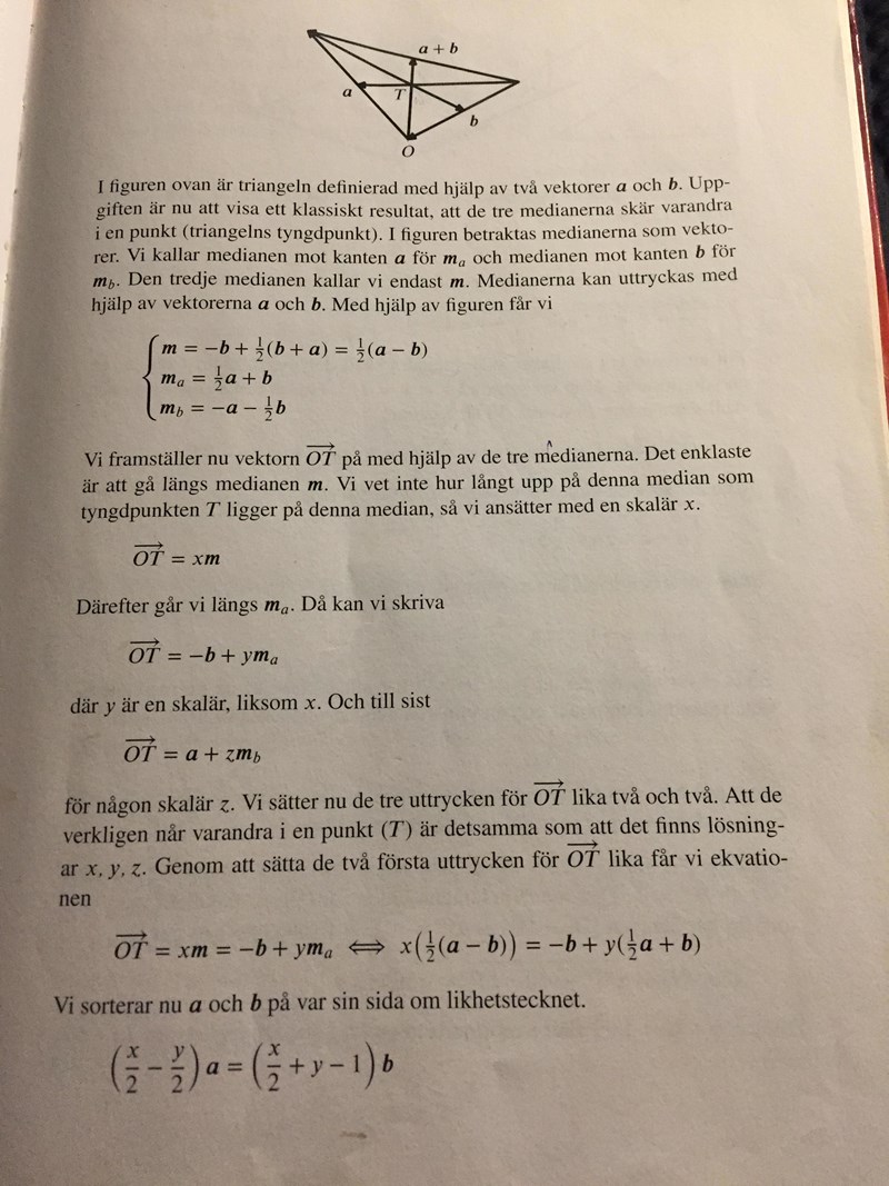först så definerar man vektorn OT med hjälp av de 3 medianerna. för att det ska funka så använder man skalärer (skalär)