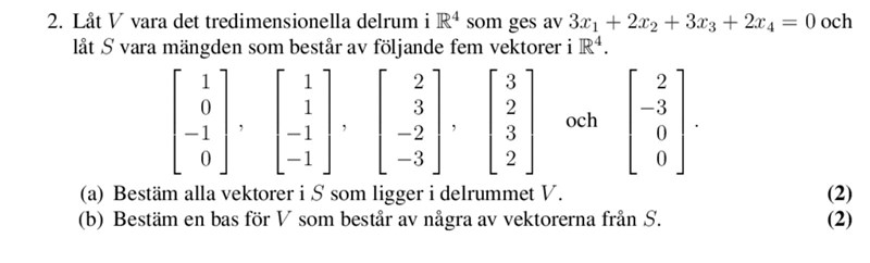 På a) skall du bestämma vilka vektorer i S som ligger i V. På b) behöver du bara ta med de vektorer som ligger i V när du radreducerar.
