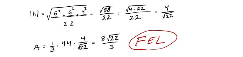 OBS! Jag har råkat sätta A istället för V för tetraederns volym i sista beräkningen i lösningen!
