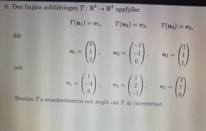 hej, frågan är hur jag kan hitta standardbas vektorene ut fra informationen i uppgiften