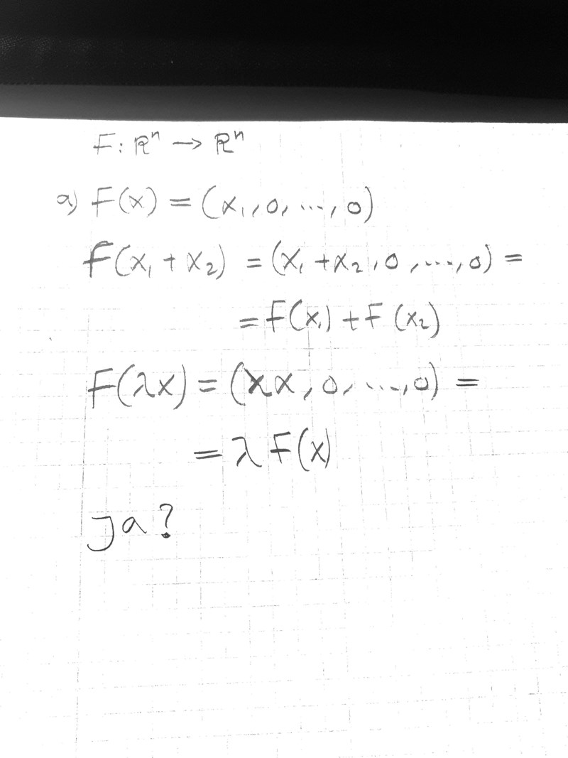 Jag ska undersöka om avbildningen är linjär. Har jag gjort rätt?