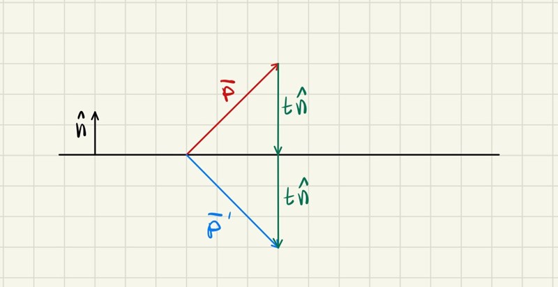 F(p0)=p0-2n·p0||n||2n\displaystyle F(p_0)=p_0-2\frac{\mathbf{n}\cdot p_0}{||\mathbf{n}||^2}\mathbf{n}