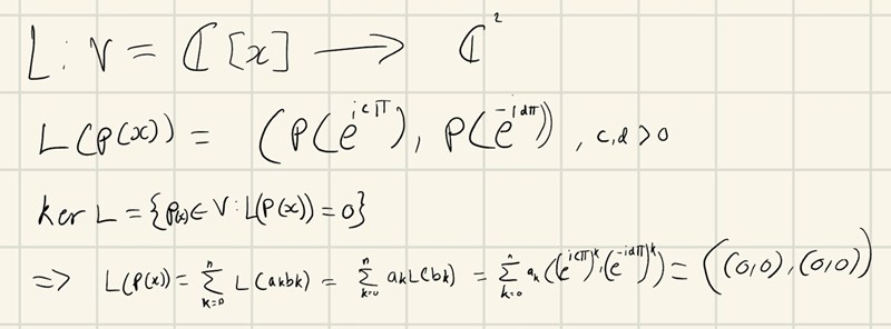 Och då kärnan av L utgörs av polynom från V som går på noll i bilden, så tänkte jag bara lösa ut det (sista raden i bilden)