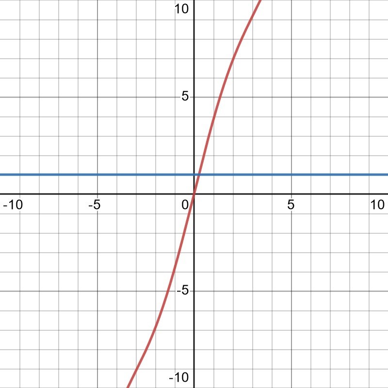Man kan se på grafen att lösningen är mellan 0 och 1, 0 är för lite och 1 är för mycket: