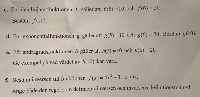 A-E är definitivt matte 3 men är f också det? Lär mig sig beräkna inversen för en funktion så tidigt? Spännande!