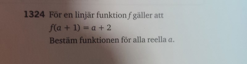 Jag kan tänka mig att uppgiften egentligen var "För den linjära funktionen f gäller f(a+1) = a+2 för alla a. Bestäm f."