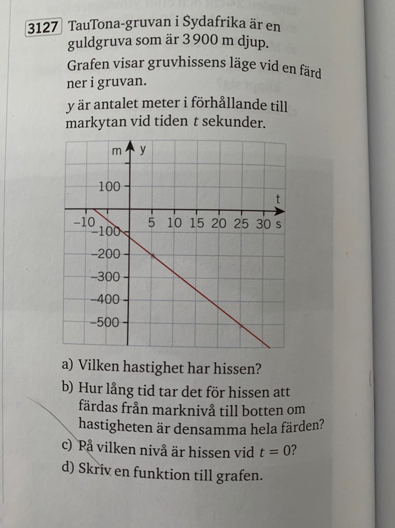 Tack så mycket!! Nu förstår jag. När t=0 är y=-125. Dvs hissen finns konstruerad 125 m under markytan, eller hur?