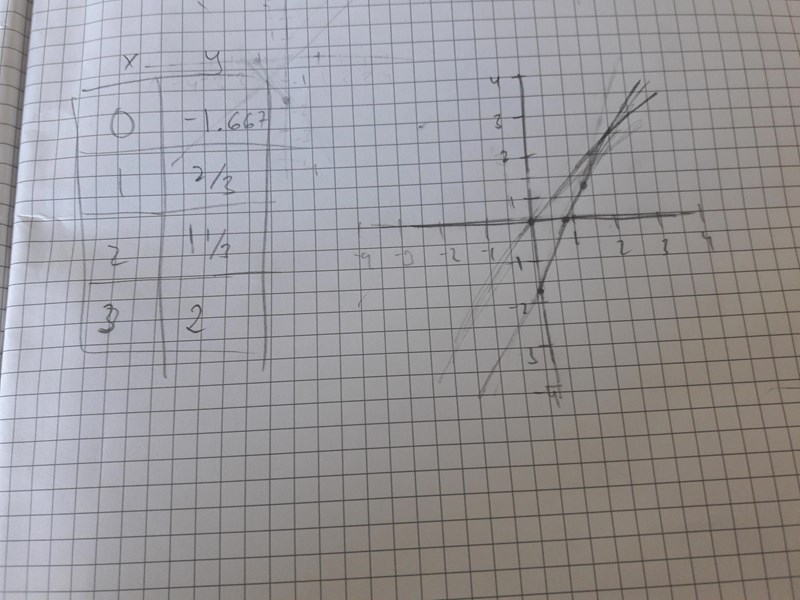 Jag är inte så bra på att rita men här försökte jag få -1.667 från y-axeln, fastän så är jag lite förvirrad över vart x ska hamna, för att k-värdet är positivt så kan jag gissa att x=2/3?