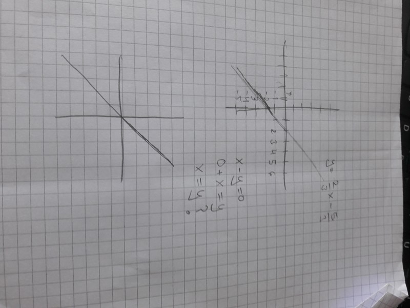 Jag tog hjälp ifrån grafer online. Eller ska det vara 5/3 minus 2/3x? Då gjorde jag något fel. Men jag räknade att y-x=0 och -5-(-5)= är inte lika med 0. Jag räknade snabbt men det är minus 10. Så jag vet inte vad jag gör för fel.