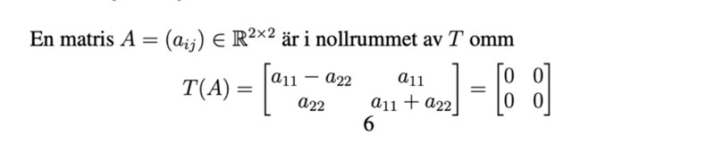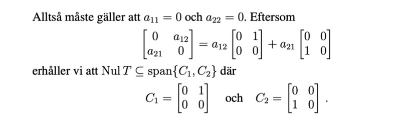 Så att A är i nollrummet är ekvivalent med att A kan skrivas med 0 och a12 i övre raden samt a21 och 0 i undre raden