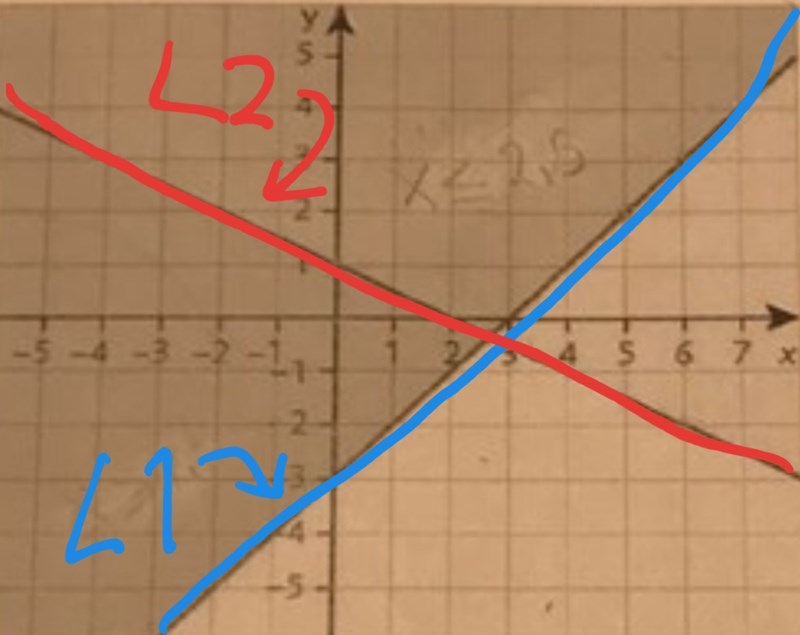Om du menar att gränsen är y=x-3, då tänker jag på linjen som skär y axeln. Men känner mig osäker
