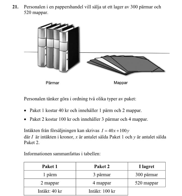 Har fått ut olikheterna  x+3y300, 2x+4y520 och x och y0