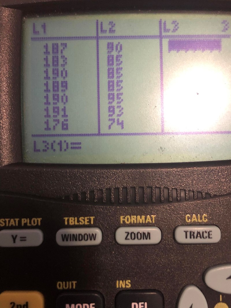 Jag har prickat in alla siffror i miniräknare. Jag fick ekvationen y=0,993x-98,34