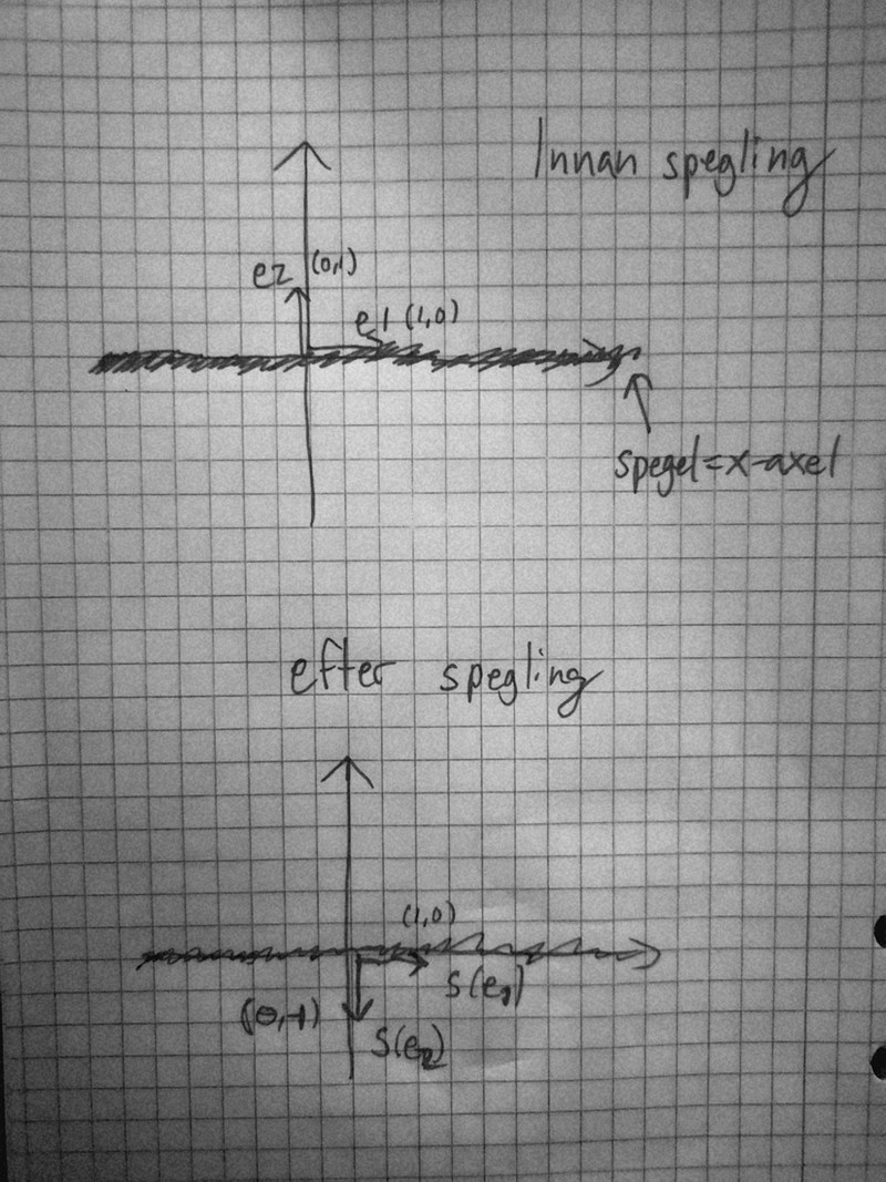 Om man har en linjär avbildning S som speglar i x1-axeln så har vi
