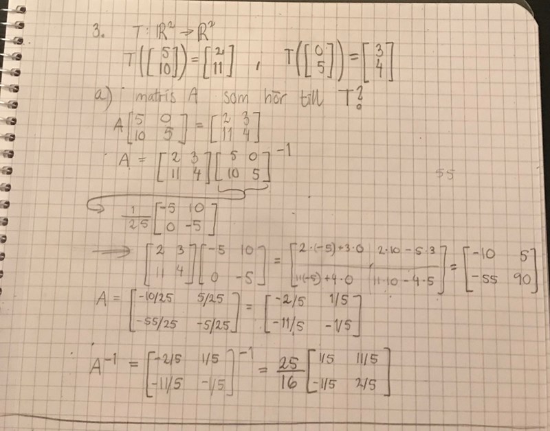 Dr. G skrev:En variant för att lösa den här typen av uppgifter är att ta fram avbildningarna av basvektorerna. Vad blir T([0,1]) och T([1,0])?