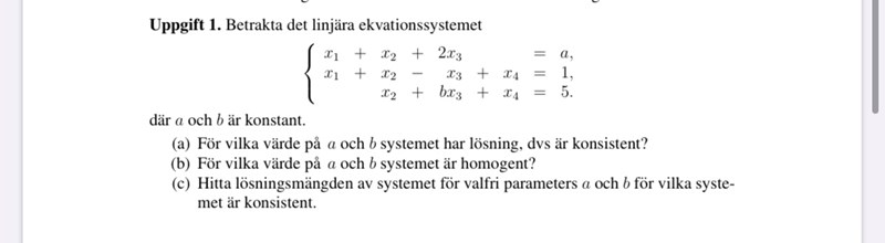 Hej! Behöver verkligen hjälp med följande. Hur ska jag kunna lösa första uppgiften när jag har två okända. Jag har redan testat att gaussa den.
