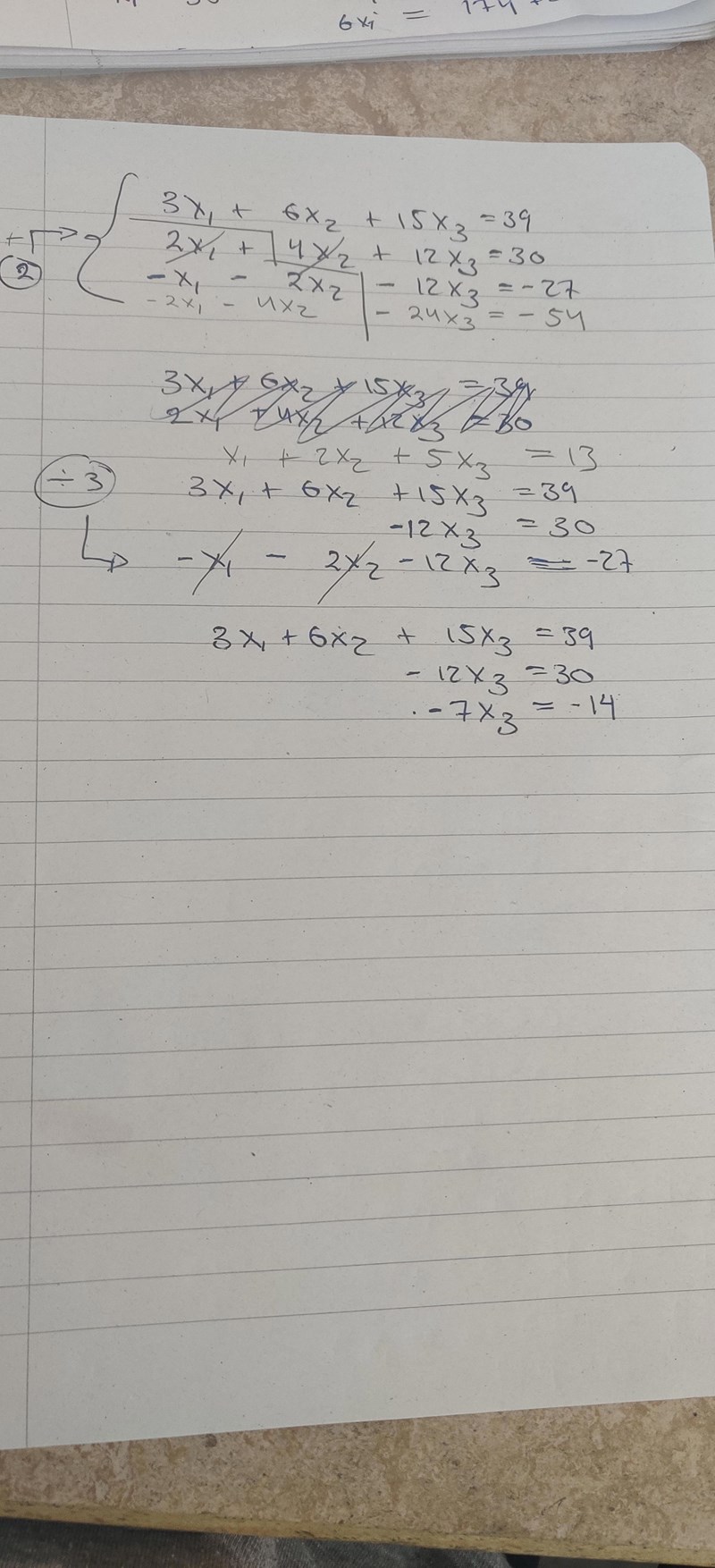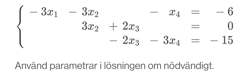 Med för långt steg menar jag inte i trappstegsform, dvs att vertikalt får det inte va 2 variabler på varandra. Hur ska jag eliminera sista raden ? Om använder de andra ekvationerna blir det något kvar ändå som x3, så hur ska jag gå bort den ?