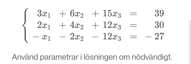 Förstår konceptet och Gauss eliminering när det kommer till linjära ekvationsystem med entydiga lösningar men detta förstår jag inte, hur ska jag få det till trappstegsform, sedan något till 0=0 och sedan sätta in en parameter ? Tack på förhand !