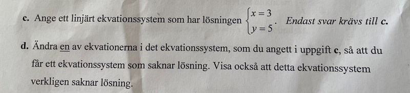 c)Jag ser bara en ekvation. Du måste först ange en ekvation ytterligare för att få ett ekvationsSYSTEM.