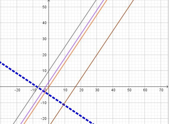 Alltså om jag förstått det rätt betyder det att linjerna korsar varandra med samma lutning?