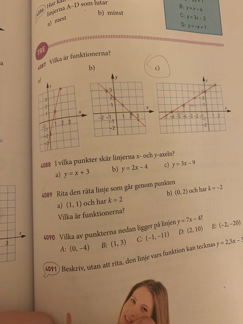 Om vi tar 4087b som exempel så skär den linjen x-axeln i (2,0) och y-axeln i (0,2).
