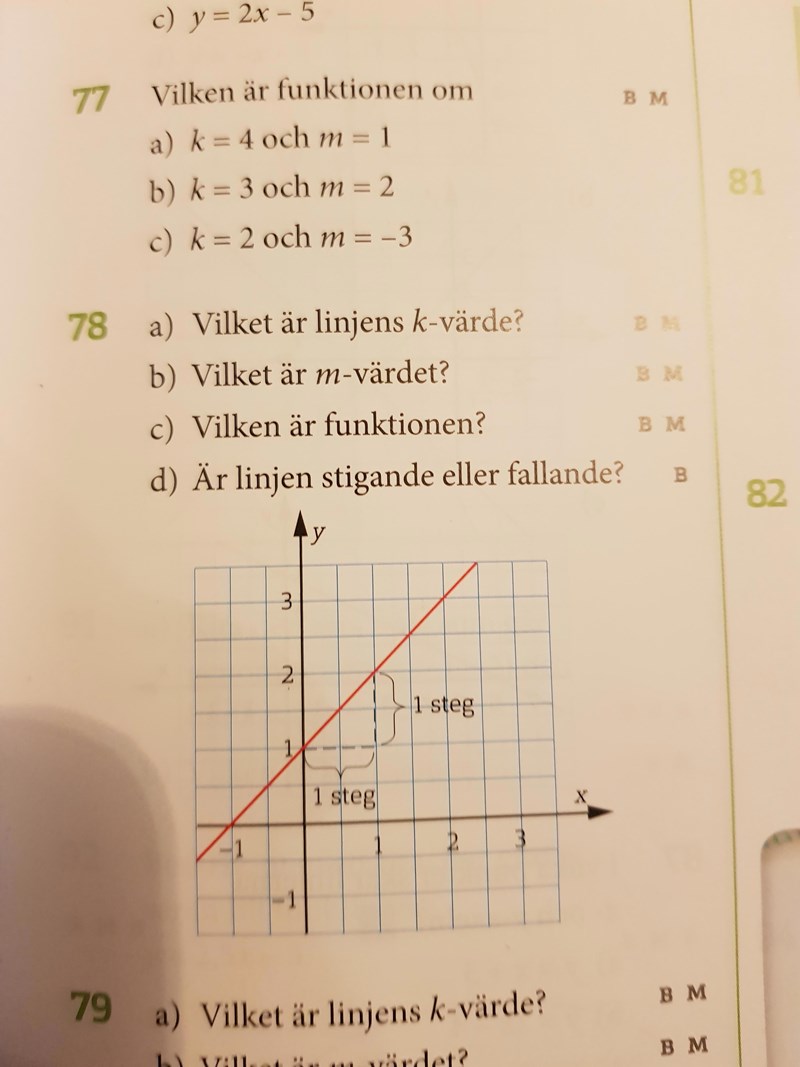 hej, k-värdet är vad man kallar för lutningen. det beskriver helt enkelt hur brant en funktion är. definitionen av k är . alltså förändringen i y-led/ förändring i x-led. (delta tecknet betyder förändring). Säg att vi till exempel har en funktion som , detta är på formen , här är m=1 och k=4, m-vrädet är vart funktionen skär y-axeln och k-värdet är hur brant funktionen är. för varje 1 steg i x-led förändras grafens funktionsvärde med 4. x=0 ger (vårt m-värde), x = 1 ger y = 5, x = 2 ger y = 9 osv.