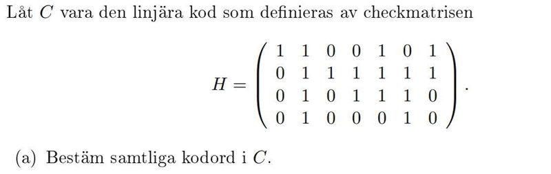 jag har svårt med att förstå hur man bestämmer kodorden. jag vet att man ska börja med gausselimination med sedan kan jag inte komma vidre.