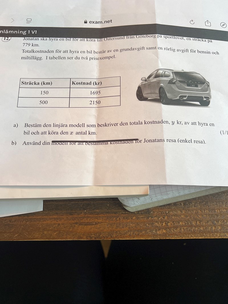 När du sedan har priset per kilometer, vad får du när du drar av priset för körda kilometer för de totalpriser du kan se för olika sträckor i tabellen?
