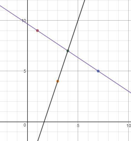 Fråga: en linje går mellan punkterna A(1;9) och B(7;5) i ett kordinatsystem. Beräkna det linjära sambandet för den linje som delar AB i två lika stora delar och går genom punkten (3;4).