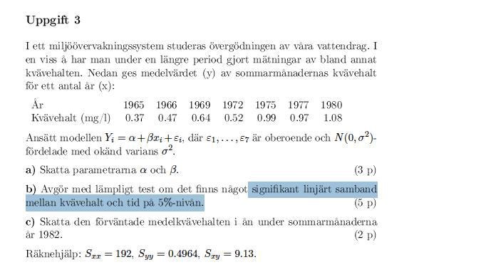 b-uppgiften, varför är man inte intresserad av alfa (dvs motsvarande m i räta linjens ekvation, kommer inte ihåg vad den heter nu igen)