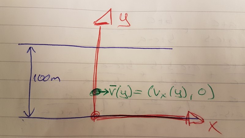 Bestäm ett uttryck för vattenhastigheten på formen v0 = (vx, 0).