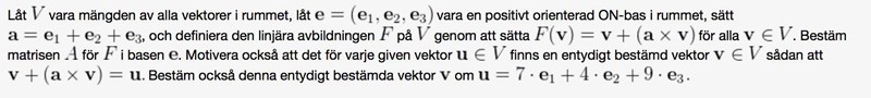När jag multiplicerar detta korv med får jag (7,4,9) så detta del måste vara rätt på nåt sätt, utan att jag vet om jag har multiplicerat den gamla/nya avbildningsmatris (???) med nya/gamla koordinater och varför jag gör det överhuvudtaket!